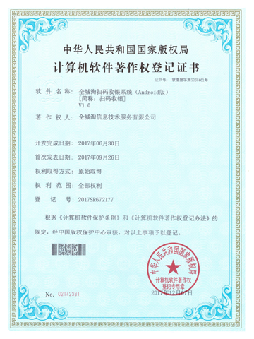 全城淘信息技术服务有限公司,国家高新技术企业,中支协会员单位,中支协聚合支付业务备案企业,拥有电信增值业务许可证,依托开店宝集团旗下开店宝公司的全国银行卡收单资质优势,基于大数据的核心价值,以支付为入口,以支付收款工具及SaaS云服务为载体,致力于通过专业化的产品和服务,帮助中小微商家实现门店收银及店铺管理的智慧化升级,用技术驱动商业革新,让生意更简单,让开店更轻松,成为商家“生意的好帮手”。